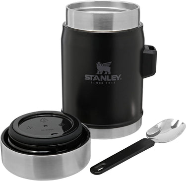 - KEEPS HOT OR COLD + INTEGRATED SPORK: The compact Stanley food flask with spork keeps food hot or cold for 7 hours. It features a leak-resistant lid with a pressure-release valve for easy opening and a wide mouth for filling, pouring, and cleaning.