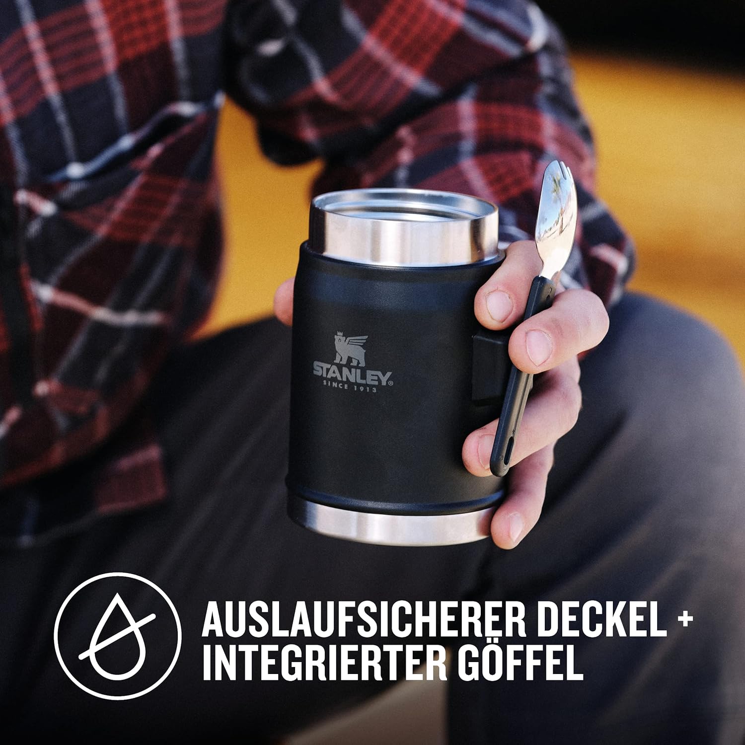 - LEAK PROOF LID: This Stanley food thermal flask features a leak-resistant lid, allowing you to pack it in your backpack without spills. It also includes a stainless steel spork that fits securely in the attached bracket.
