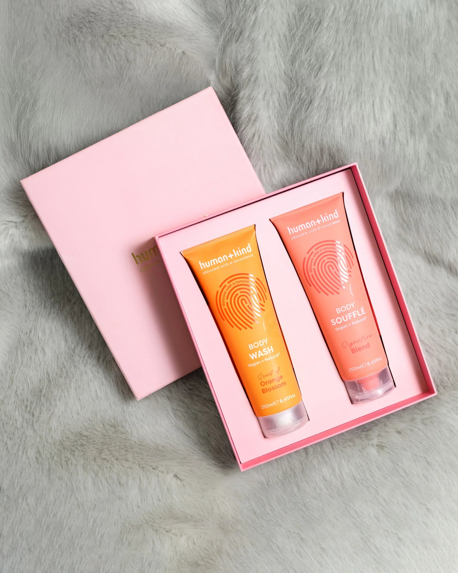 Radiate with Human and Kind's "Natural Glow" gift set, designed to refresh, nourish, and leave your skin feeling beautifully soft. This set includes: