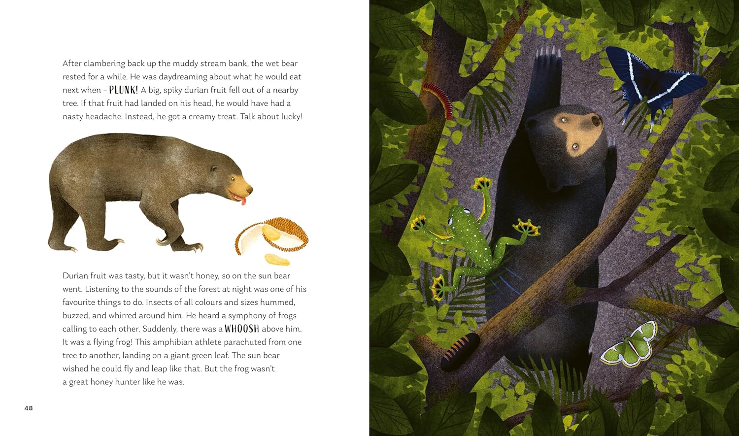 Other stories feature elephants, wild cats, pangolins, badgers, foxes, monarch butterflies, otters, walking fish, a tree that can live for thousands of years, and even forest-dwelling penguins!