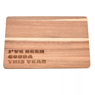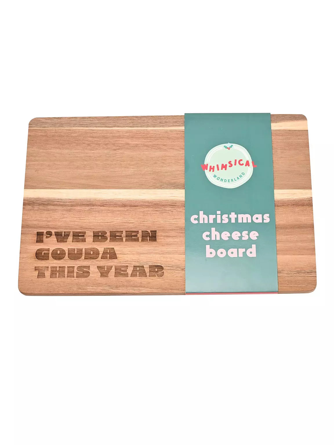 The I've Been Gouda This Year Cheese Board is a festive and humorous serving piece, ideal for adding personality to your holiday gatherings. Made from solid wood, it offers a rustic aesthetic that complements any seasonal table setting. The board features a witty engraved message that cheese lovers and pun enthusiasts will appreciate, making it both a practical and playful choice for presenting a selection of your favourite cheeses.