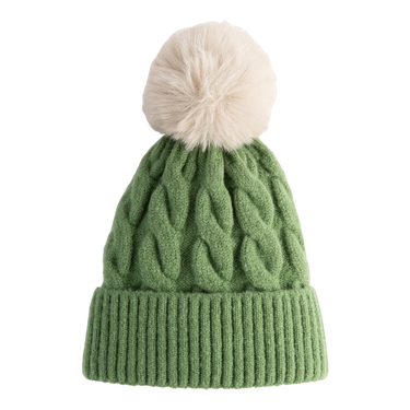 The chunky braid style knit of this Elise Hat is classic with a preppy edge. Gorgeous sage tones combine with a soft cream faux fur pompom for a look that is perfect for the green girly in your life.