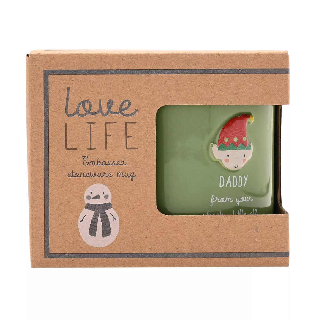 Love Life by CELEBRATIONS® is your go-to collection for heartfelt gifts and charming home décor. Cute characters and meaningful sentiment make these guaranteed to raise a smile from loved ones! Classic stoneware mug with a 3D embossed elf and with the words 'Daddy from your cheeky little elf'. In a gift-ready box, this is the ideal everyday mug to add a little seasonal spirit to any home! Suitable for microwave and dishwasher.