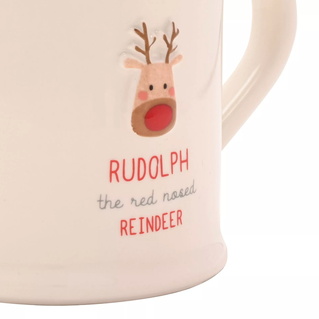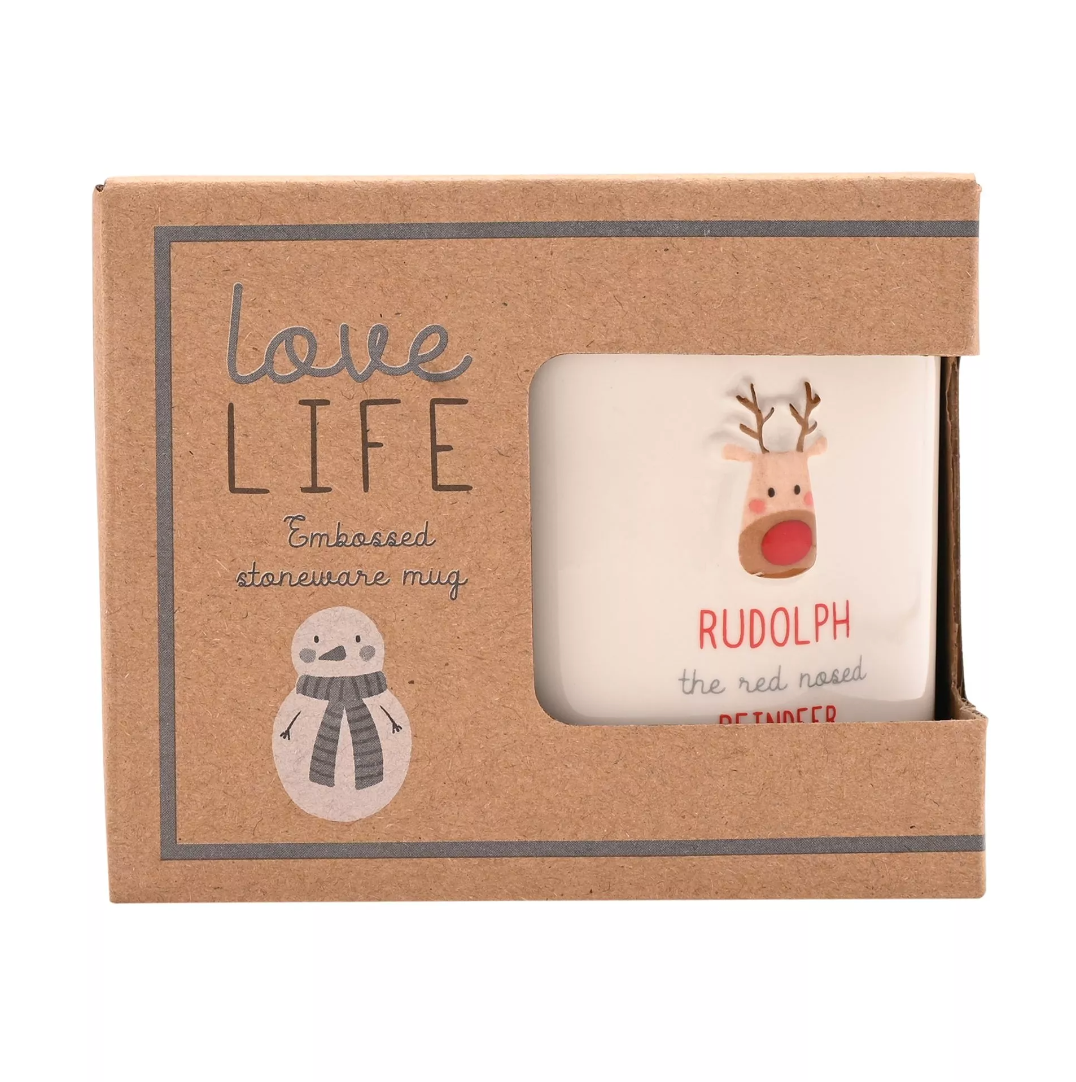 Love Life by CELEBRATIONS® is your go-to collection for heartfelt gifts and charming home décor. Cute characters and meaningful sentiment make these guaranteed to raise a smile from loved ones. Classic stoneware mug with a 3D embossed Rudolph and with the words 'Rudolph the red-nosed reindeer'. In a gift-ready box, this is the ideal everyday mug to add a little seasonal spirit to any home! Suitable for microwave and dishwasher.