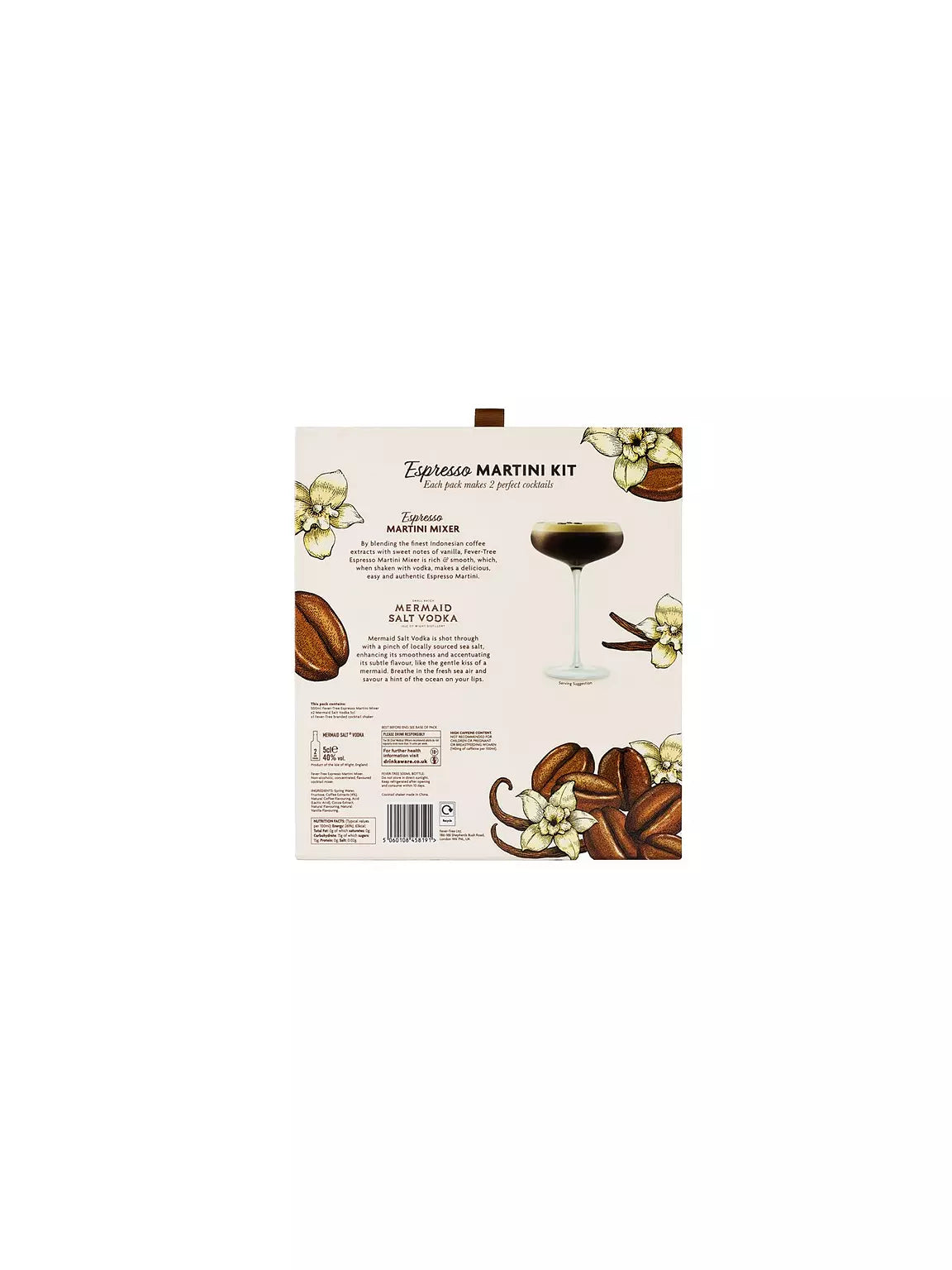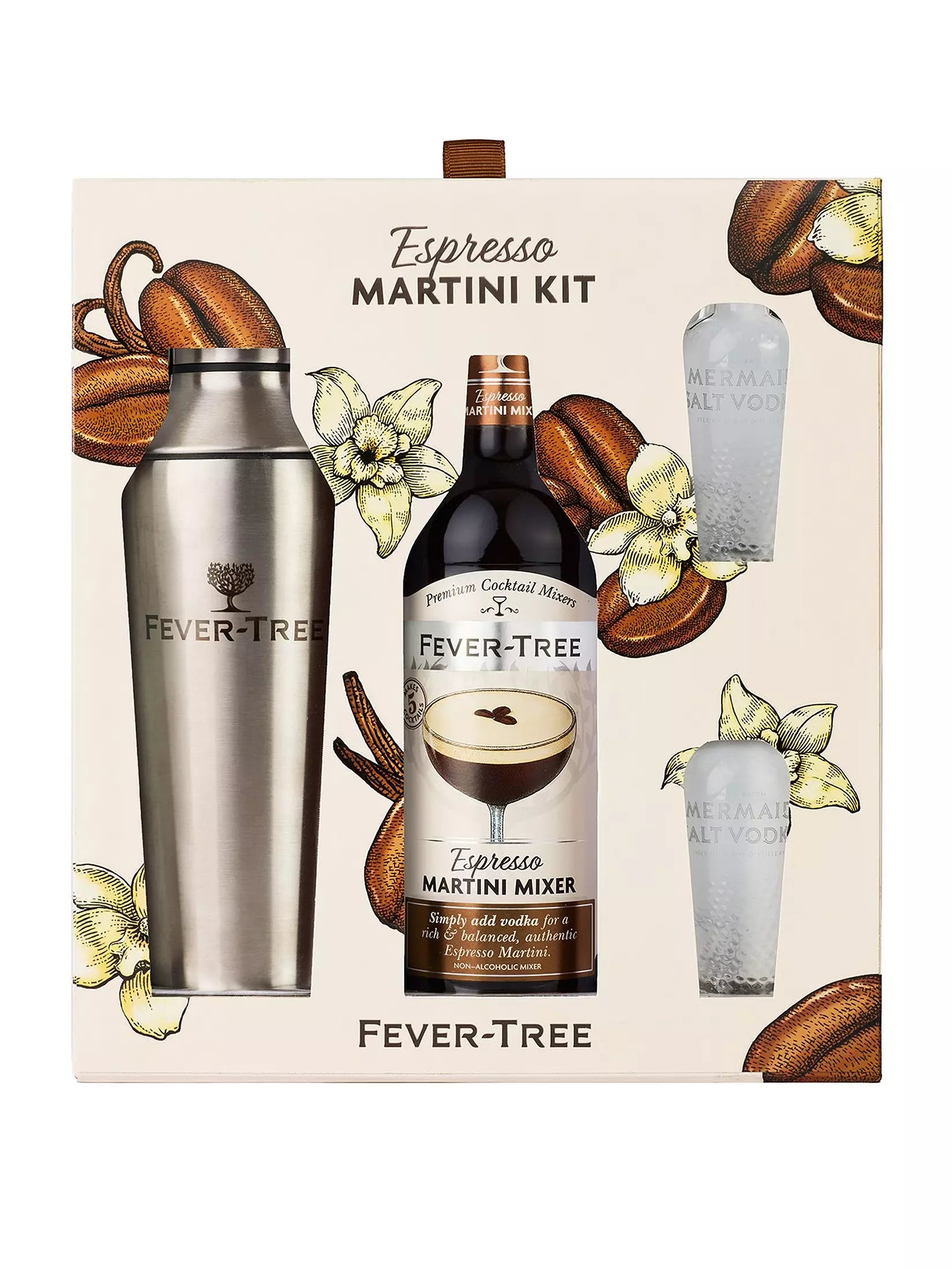 • Includes 2 x 50ml Mermaid Salt Vodka (ABV 40%), 1 x 500ml Fever-Tree Espresso Martini Mixer and 1 x branded Fever-Tree Cocktail Shaker