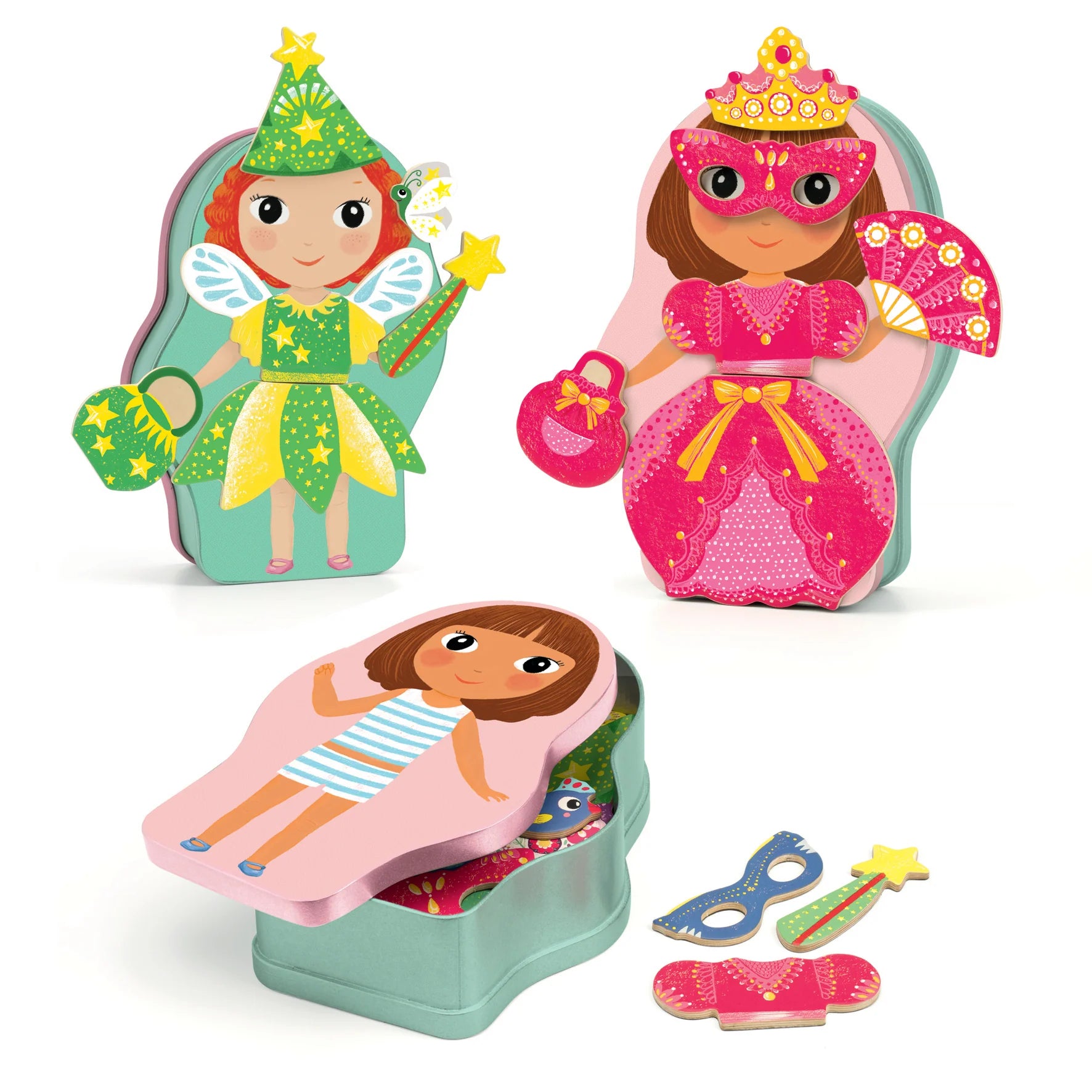 Inzebox, a new way to play with magnets! A metal box in the shape of a character on which the child places magnetic wooden pieces to have fun dressing pretty fairies and princesses.