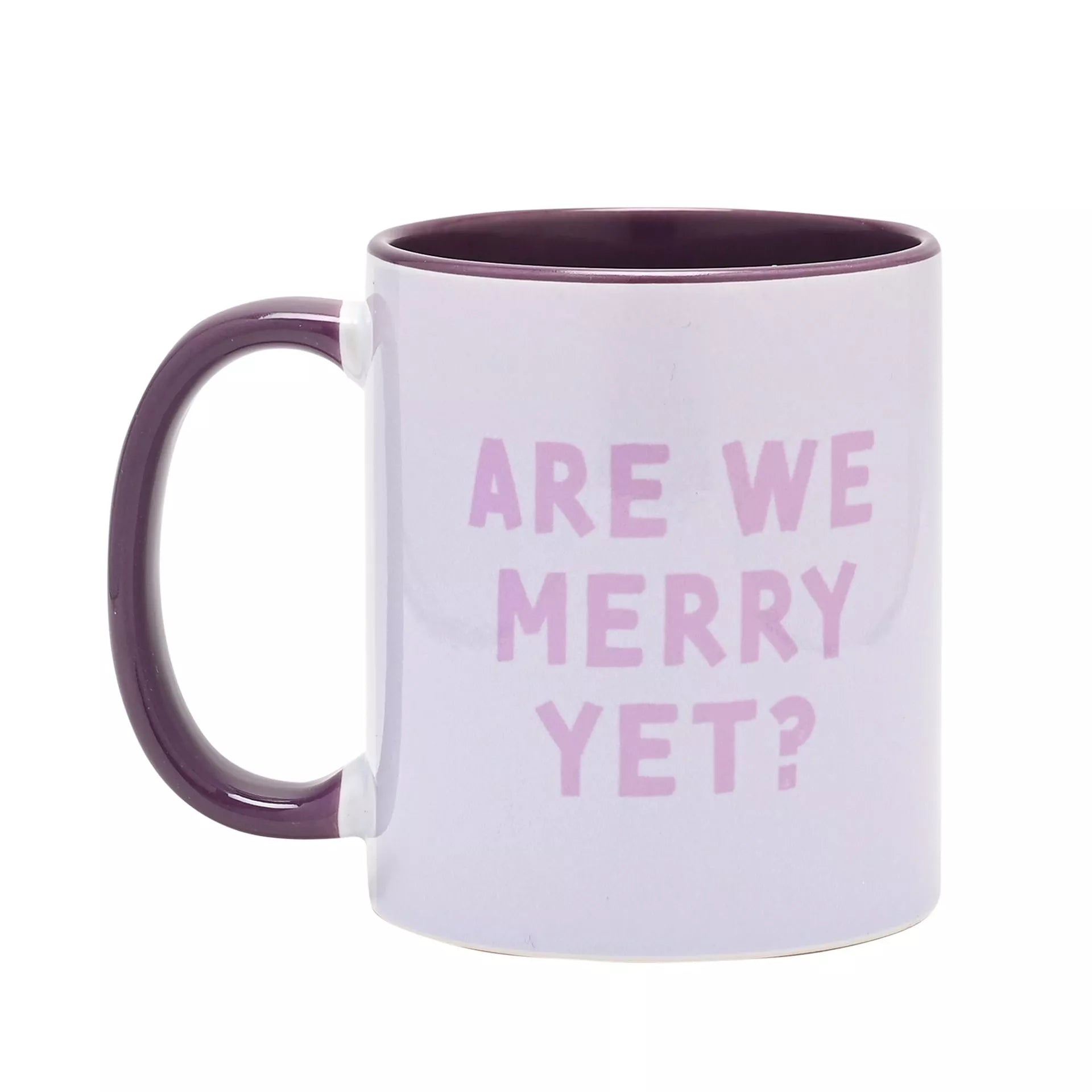 Elevate your retail offerings with our Purple Handled Mug by The Seasonal Gift Co. Posing the playful question, "Are We Merry Yet?"