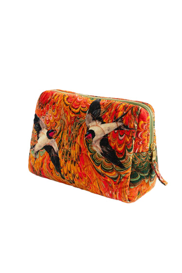 Nothing says cold weather luxury like velvet, and combining it with bespoke Powder print on this Wash Bag makes for the ultimate statement piece this season. Gorgeous scalloped quilting adds another layer of luxurious texture. This Marbled Swallows design combines two prints in one for a psychedelic Autumnal treat!