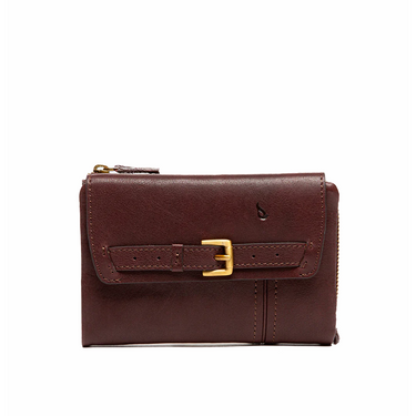 Medium-sized women's wallet made of leather, with a design that stands out for its front flap closure, which features a decorative gold buckle. Compact and elegant, it's ideal for those looking for functionality with style. Its main features are:
