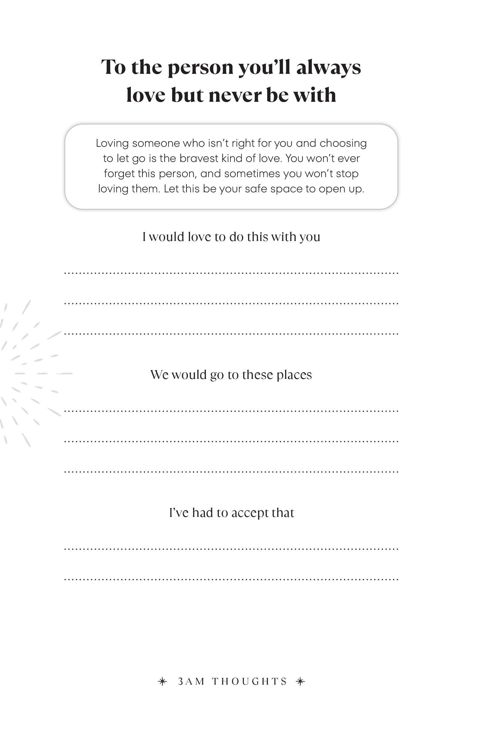 From the TikTok creator who brought you the popular Let's Talk and Not Delivered journals comes a powerful guided journal for when you need it most. When you're kept awake at night by hopes, worries or regrets, how can you put your mind at rest?