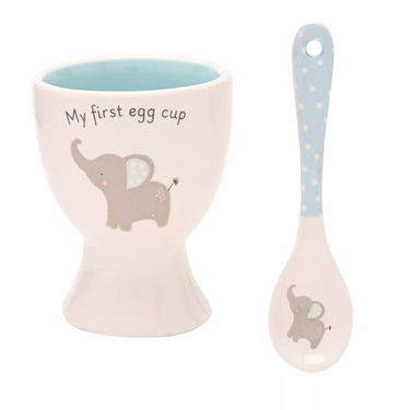 Make breakfast extra special with this adorable ceramic Hello Baby 2 Piece Egg Cup & Spoon Set - Blue. Featuring a blue and white colour palette, a cheerful elephant design, and the message “My first egg cup”, it’s perfect for a little one’s first dippy eggs. Sized just right for small hands, it makes a thoughtful and practical gift for new arrivals.