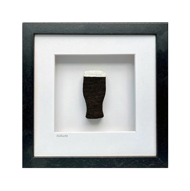 Sláinte means "Health" in Irish and is probably the most widely used toast of good wishes. The pint of stout is an iconic Irish symbol. Sláinte is very often ceremoniously repeated before you take your first sip! Each each piece is unique.