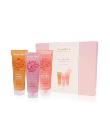 Unlock the secret to glowing skin with Human + Kind's "Signature Collection" gift set. This beautifully curated Irish gift set includes the three essential steps to radiant skincare: